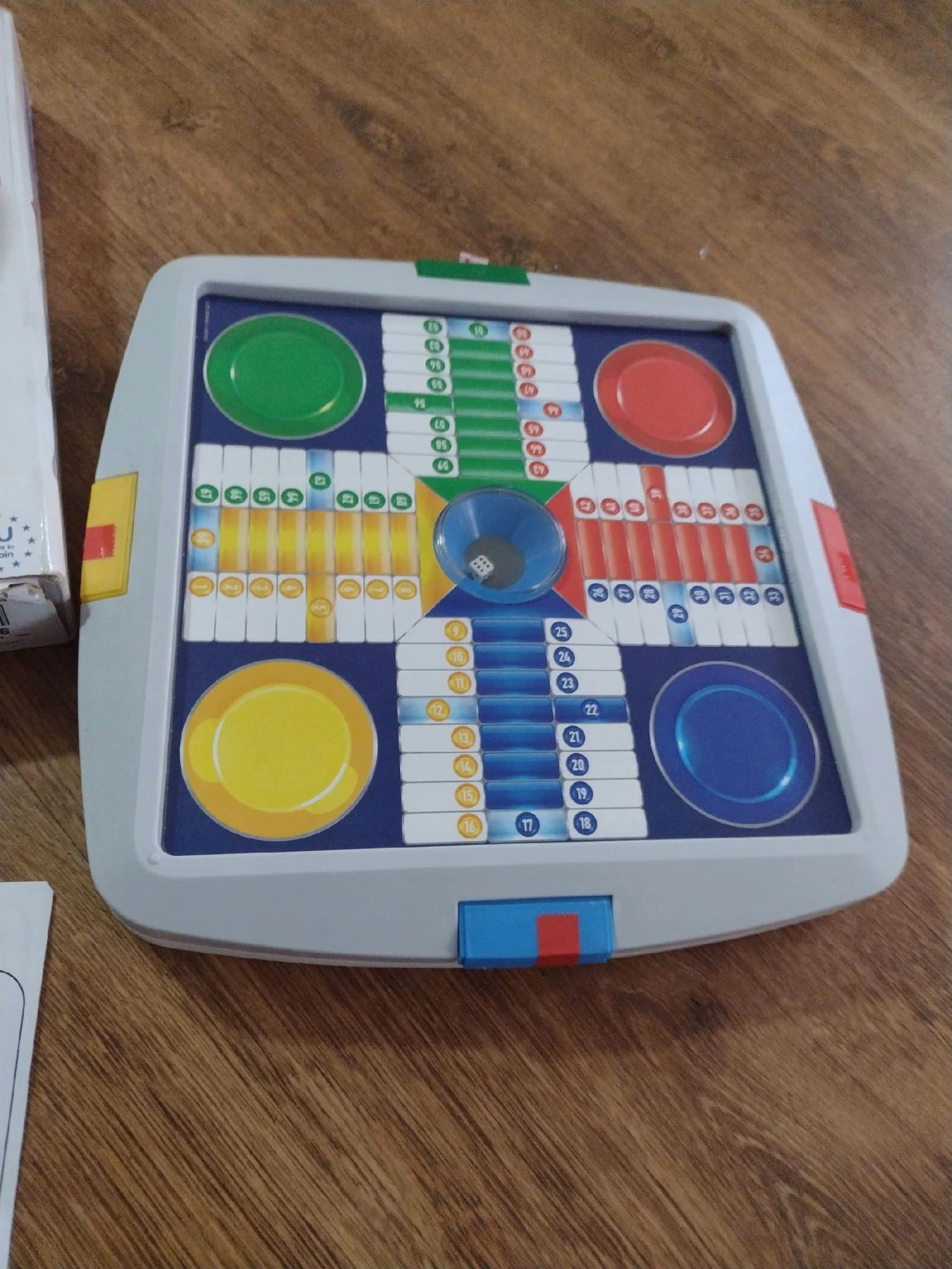 Brand: Chłopcy. Z pokrywką do przechowywania żetonów. Po naciśnięciu pola kostki to automatycznie przesuwa się. Optymalna powierzchnia gry.