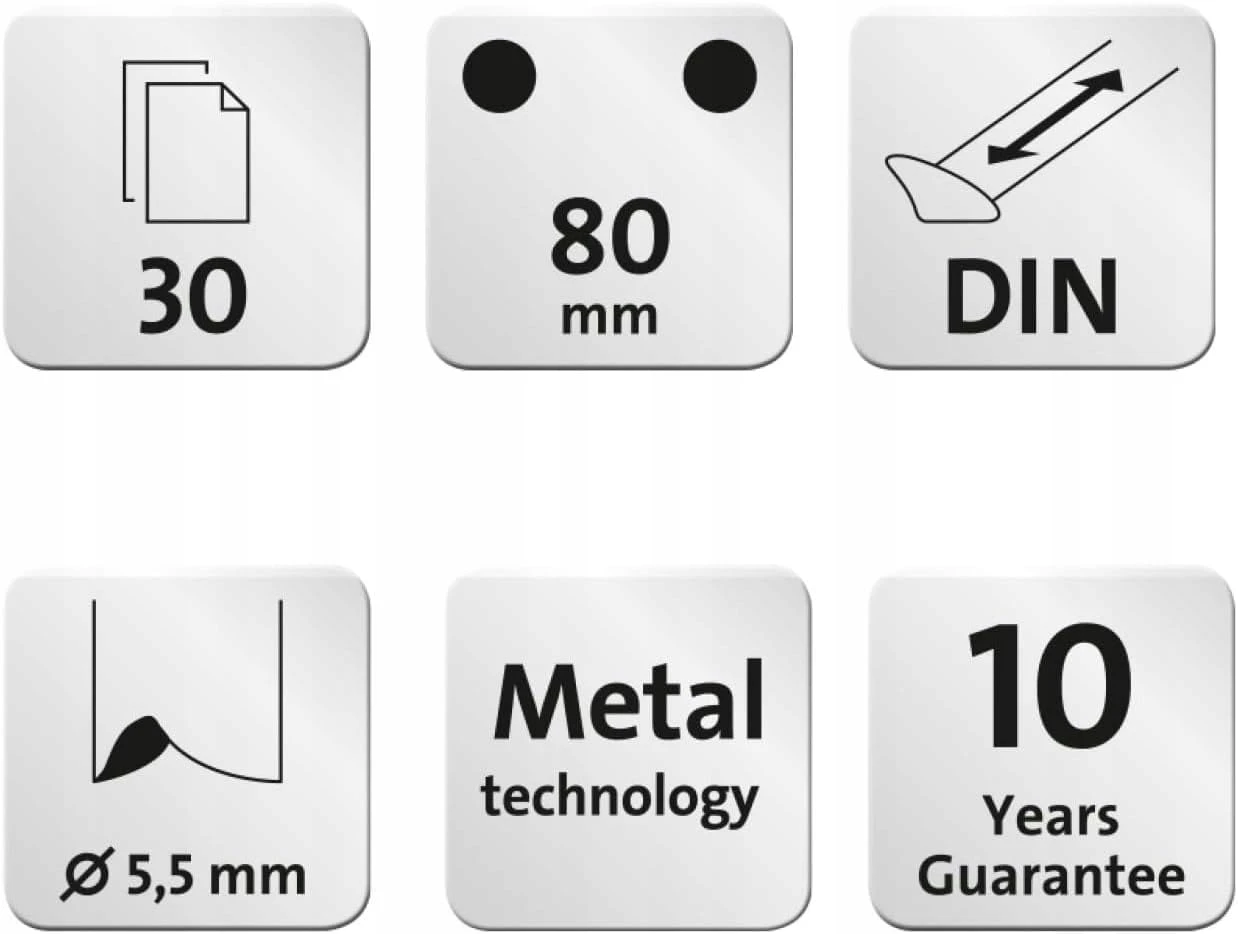 - Ergonomiczny uchwyt – mniejszy wysiłek przy dziurkowaniu