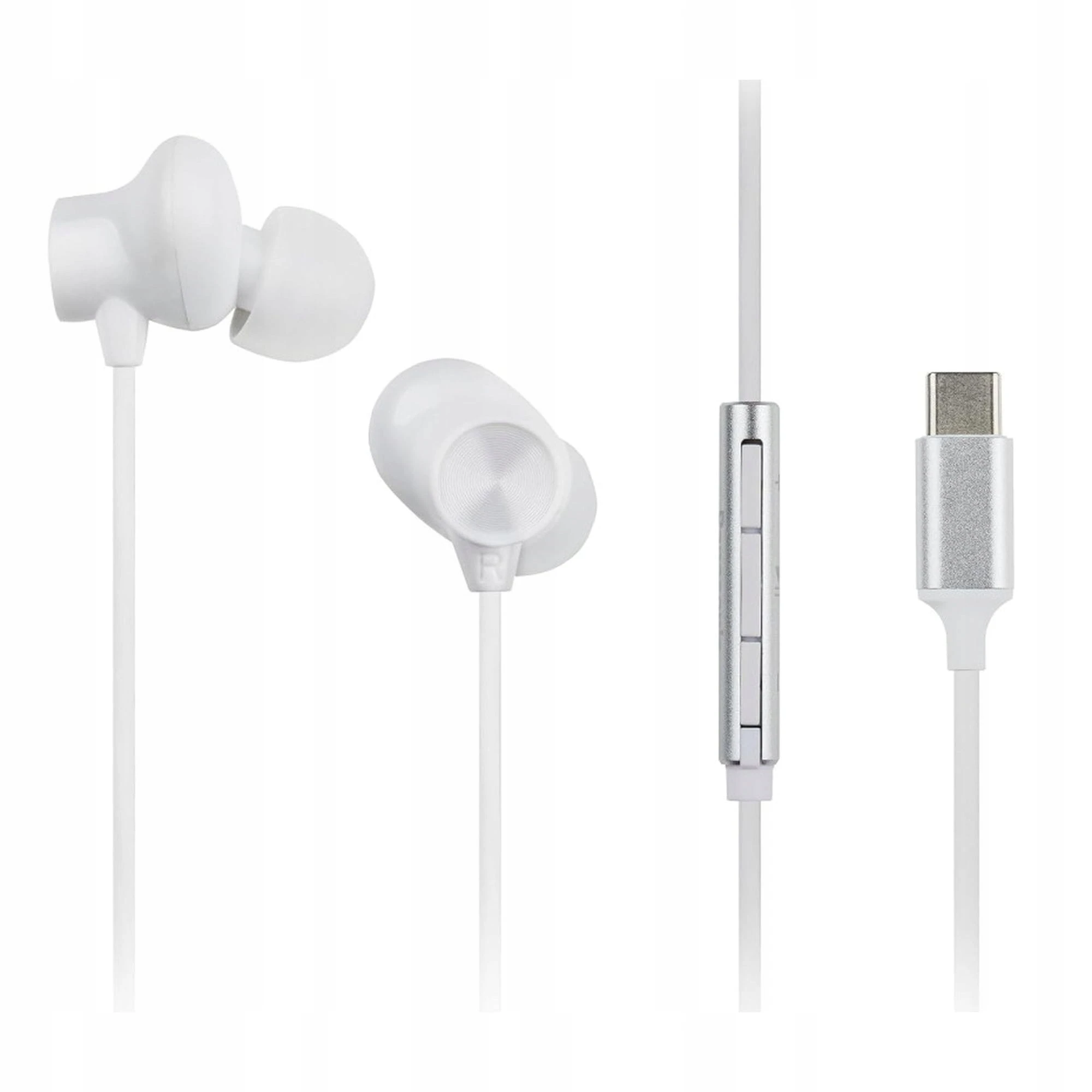 Słuchawki douszne USB-C (przetworniki 10mm, wbudowany mikrofon, przycisk sterujący, kabel 1.2m, 3 rozmiary), białe