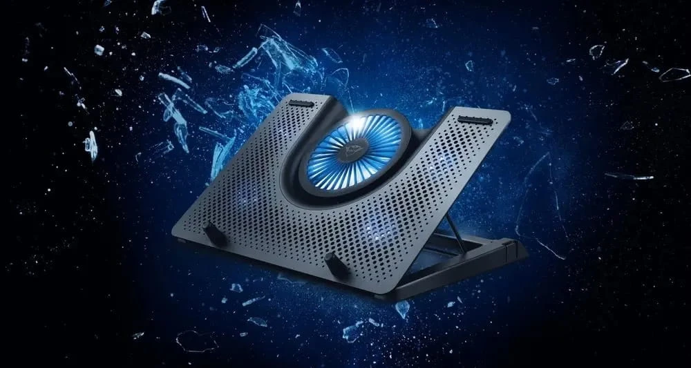 - Zwiększ wydajność laptopa i stwórz lepszą wysokość i kąt widzenia 5 podświetlanych na niebiesko wentylatorów (1x 130 mm, 4x 50 mm)