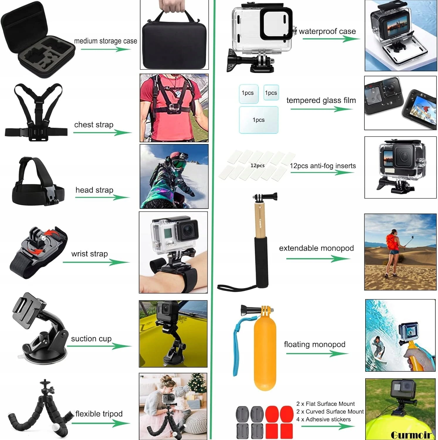Zestaw akcesoriów Gurmoir z wodoodporną obudową do kamer Gopro 12 11 10 9